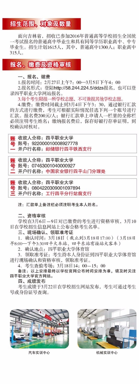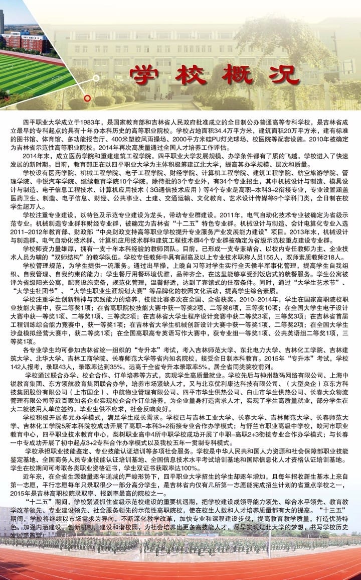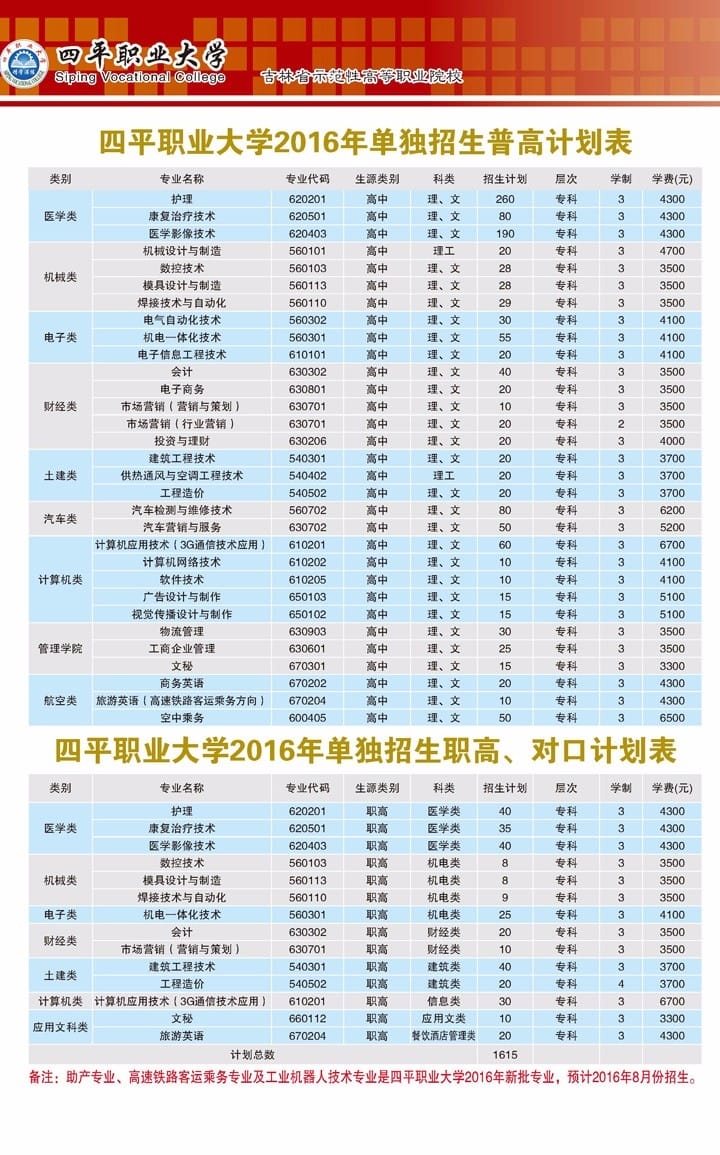 四平职业大学2016年单独招生报考指南